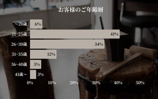 主な顧客層は21~30歳で全体の75%を占めており、特に20代前半(21~25歳)が最も多い(41%)ことが分かりました。