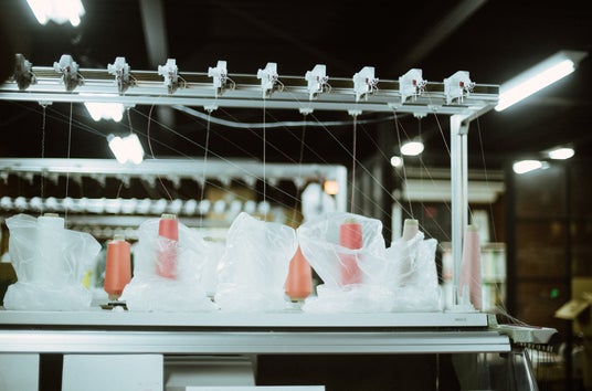 編み上げでは、表地用・裏地用それぞれ570本の針を備えたマシンを駆使し、バッグ本体とハンドルを一体で編むことが可能。裁断や縫製の手間を最小限に抑え、ロスも少ないため環境にも配慮されています。