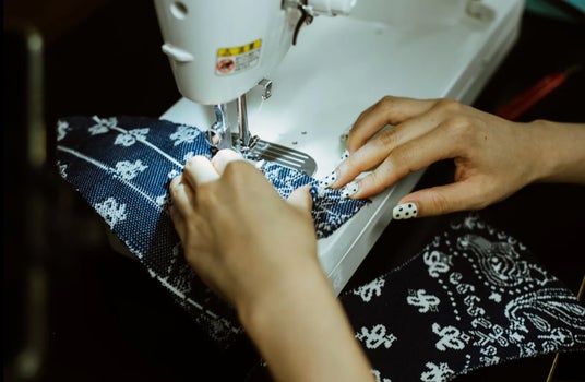 アップサイクル作品を制作している様子