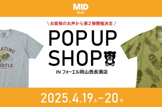 大きいサイズのメンズ服通販サイト「ミッド・インターナショナル」( https://www.bigsize.co.jp/ )を運営する株式会社マンチェス(本社:岐阜県岐阜市、代表取締役:高見澤 聡)は、2025年4月19日(土)~20日(日)までの2日間限定で第2弾となるポップアップストアの開催を発表しました。