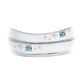 シンデレラの夢を叶えた魔法。キラキラと輝く魔法の軌道をイメージし、奇跡の瞬間を美しい流線とダイヤモンドで表現したリング。2本のマリッジリング内側のキラキラ刻印を合わせると、ブルートパーズと共に魔法のキラキラがつながります。
