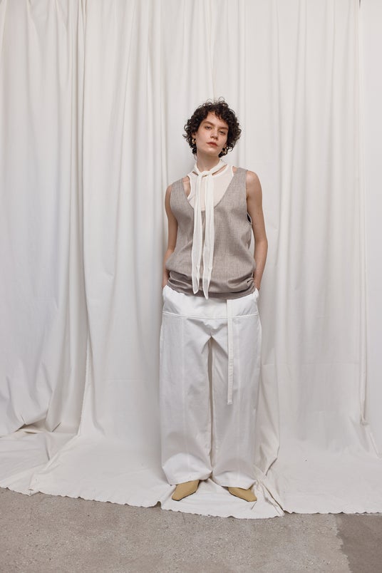 ユニセックスなサイジングを取り入れ、スタイルの固定概念に縛られない自由なバランスを生み出します。