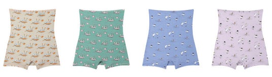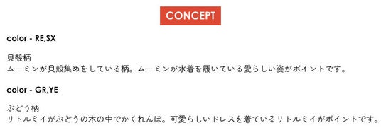 今回はムーミンが貝殻集めをしている柄でムーミンが水着を履いている愛らしい姿を実写で表現しました。
