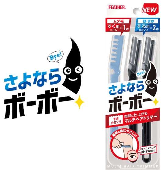 カミソリ製品をはじめ、理美容製品や医療用刃物の製造・販売を行うフェザー安全剃刀株式会社(本社:大阪市北区、代表取締役社長:岸田 英三)は、「さよならボーボー」男性向けマルチヘアトリマーを2026年2月に新発売しました。ムダ毛を「すく」と顔を「剃る」の両機能を持ち、衛生的に、かつ狭い所やくぼんだ部分に使える男性向けの商品は、市場において初登場となります。