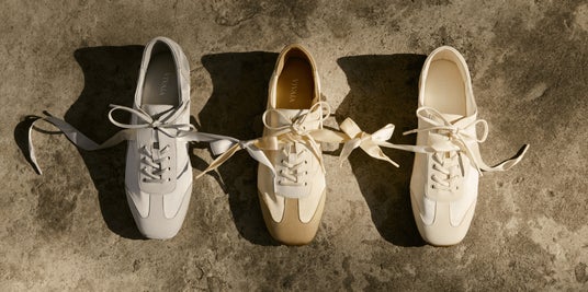 「スニーカーの快適さ」と「バレリーナの優美さ」を融合させ、AWシーズンに人気を博したスニーカーリーナシリーズ。アッパーには上品な光沢を持つサテン素材を使用し、スポーティになりすぎない大人の抜け感を演出。スリムなスニーカーシルエットはどんなテイストのスタイリングともマッチします。今季さらに追求したのはその履き心地。まるで履いていないかのような軽い着用感はそのままに、長時間履いていても疲れないよう、ソールのクッション性によりこだわりました。どちらのモデルも洗濯機で洗えるのも大きな魅力です。
