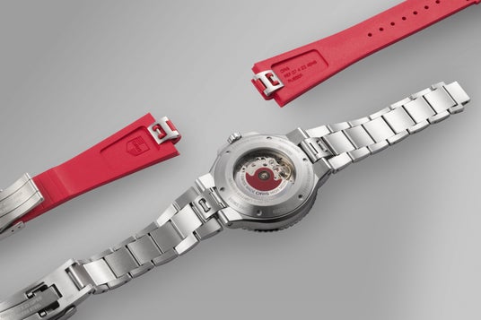 上品なホワイトは純粋さと洗練さを象徴し、レッドのアクセントが力強い個性を添える色彩は、日本とスイスの国旗に共通する色でもあり、スイス時計の卓越した技術とオリスが日本文化に寄せる敬意を表しています。