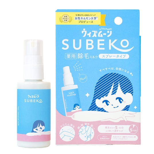 そんなリアルな悩みの声から「ティーンのはじめての除毛」の選択肢として、やさしい薬用除毛ミルク(スプレータイプの除毛クリーム)「ウィズムーンSUBEKO 薬用除毛ミルク」の開発に至りました。「すべすべは、自信になる」のコンセプトをもとに、毛の悩みを持つお子さまがいるママ目線でも安心して選べるよう、思春期の肌を傷つけずに簡単に使えるようなスプレーの仕様やミルクタイプのテクスチャーにこだわり、悩みに寄り添うアイテムとなっています。