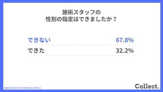 施術スタッフの性別を選べるかどうかについては、「できない」が7割近くを占めました。