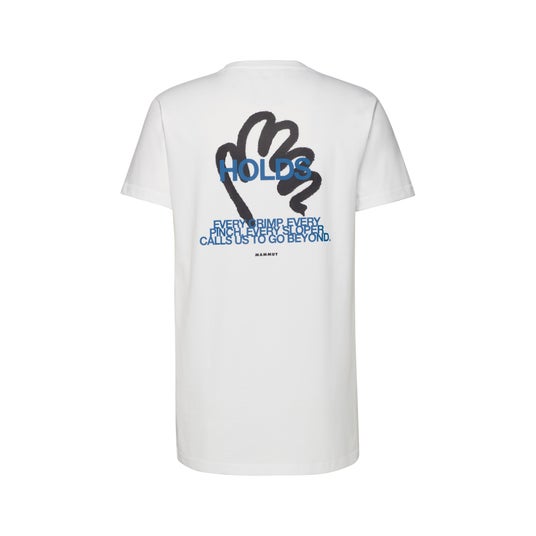 100%オーガニックコットンの自然な通気性と柔らかな肌ざわりを備え、マムートならではの高いクオリティを実現したミディアムウェイトのTシャツ。壁を登る時に支えとなる手、そして新しい場所に挑戦するときに互いに支え合うクライマー同士のきずなを表現したデザインが特徴です。