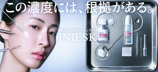 「未来の常識を創り出し、人々の生活を変えていく」をグループ理念に掲げ、日本全国47都道府県に約3,500店舗、海外ではアジアを中心とする6エリアに79店舗(2025年3月末現在)のドラッグストア・調剤薬局を展開する株式会社マツキヨココカラ&カンパニー(本社:東京都文京区、代表取締役社長:松本清雄)は、美容皮膚科学発想のスキンケアブランド「INJESK(インジェスク)」の展開をスタートします。デビューアイテムとして、生凍結※1したNMN※2 1%配合※3の2剤式美容液を含む4商品を9月11日(木)より全国のマツモトキヨシグループ、ココカラファイングループ(一部店舗を除く)と自社オンラインストアで販売開始します。