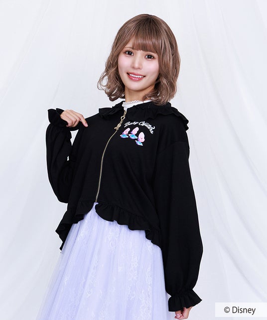 日常的なコーデに取り入れやすいパーカーをフリルで飾りキュートに仕上げました。