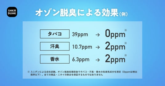 「SNKRDUNK(スニーカーダンク)」(以下、スニダン)を運営する株式会社SODA(本社:東京都渋谷区、代表取締役CEO:内山 雄太、以下SODA)は、中古アパレルの購入時にオプションで選択できる「オゾン脱臭・除菌」サービスの提供を開始します。