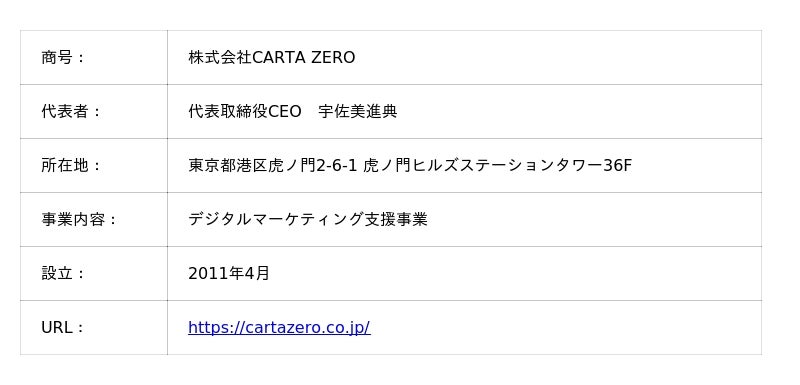 社C A R T A Z E R O ( 本 社: 東京都港区、代表取締役C E O : 宇佐美進典、以下