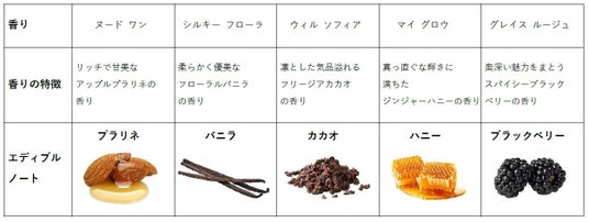 フレグランスブランド「ヴァシリーサ」より、ヌード ワン シリーズ 5種の香りが楽しめるキャンディのようなフレグランスコフレセットが登場します。「小さな幸せの詰め合わせ」をコンセプトに、おかしのようなグルマンの香りを手軽に試せるセットです。5種の香りには、キー香料として「エディブルノート」という“食べられる”ものをモチーフにした香りが使われています。奥深く上品でありながら、重すぎない甘く爽やかな香りが特徴です。