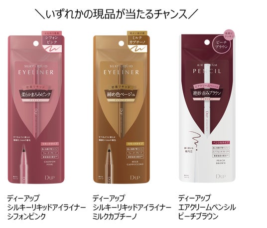 さらにWチャンスとして、巨大ガチャにご参加いただき、当たりが出たら【D-UPアイライナーシリーズの現品】をプレゼントいたします。