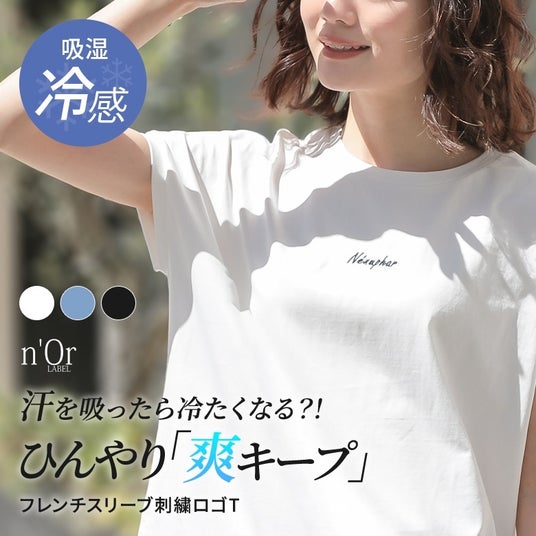 n'OrLABEL冷感キープフレンチスリーブ刺繍カットソー