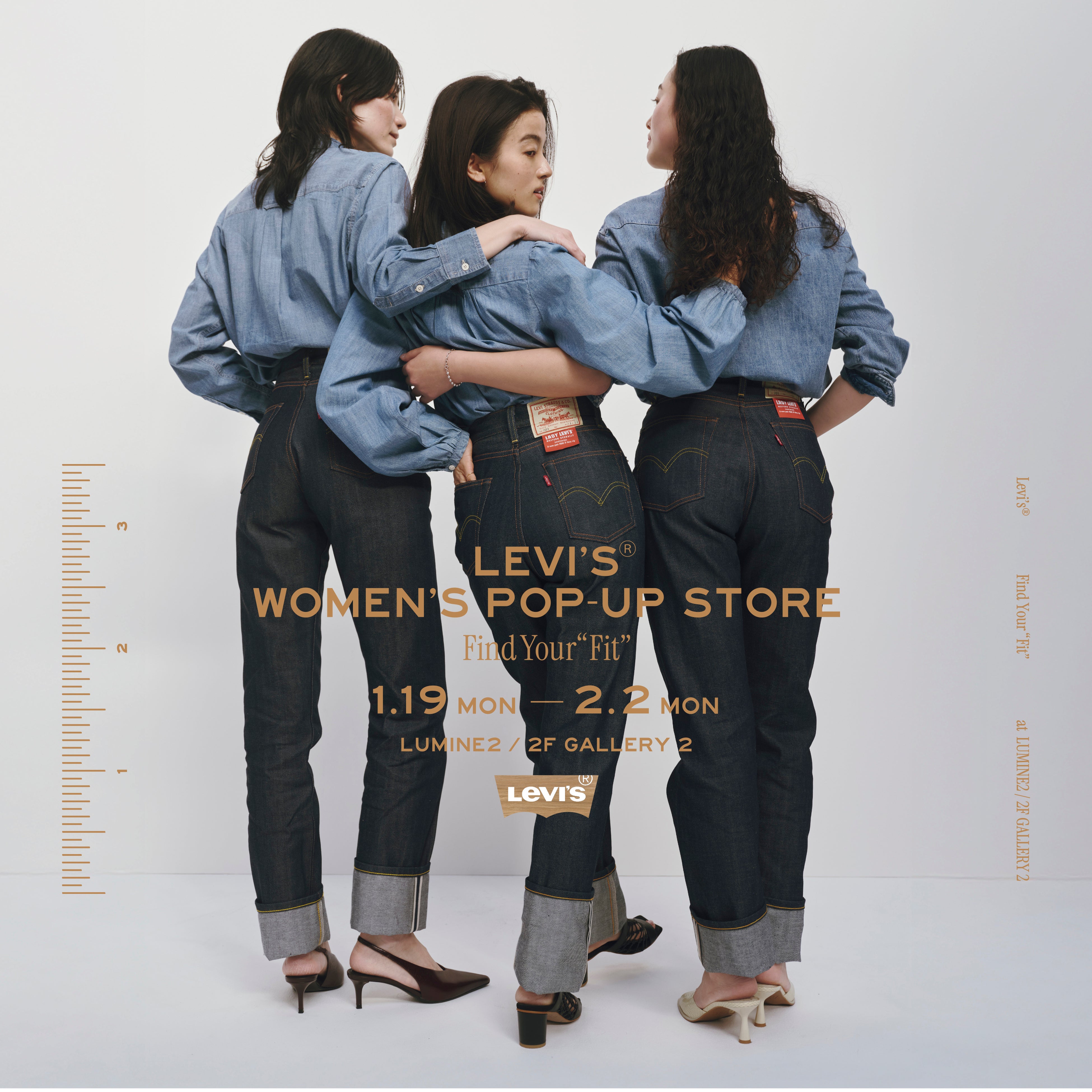 LUMINE 2 にて、日本初となるウィメンズ向けのポップアップストアを期間限定でオープンします。日本初となるウィメンズ向けのポップアップストアは、デニムアイテムを軸にトップスやアウター、アクセサリーまで、幅広いラインナップでコーディネートの楽しさを体感いただける特別なストアデザインと、自分にぴったりのデニムに出会える多彩なキャンペーンでお客様をお迎えします。