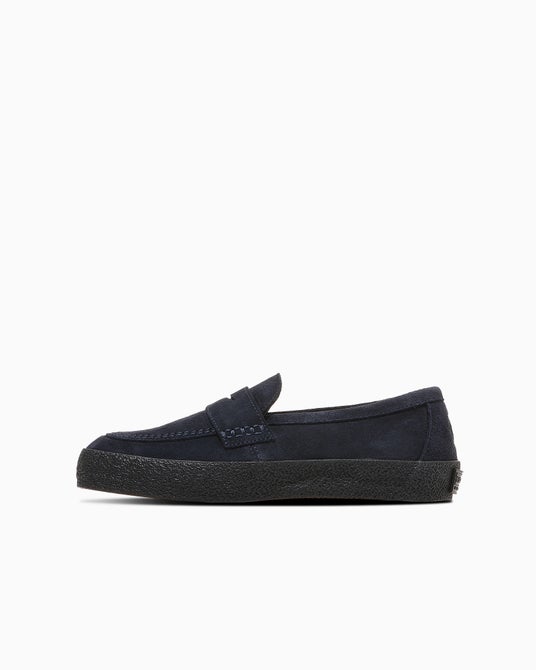 ローファーデザインを、スケート仕様にアップデートしたモデルです。 全面に耐久性の高いスエード素材を採用し、サイドテープにはクレープソール風のデザインテープを用いることで、スケートシューズとしての機能性とローファーならではの佇まいを両立しています。