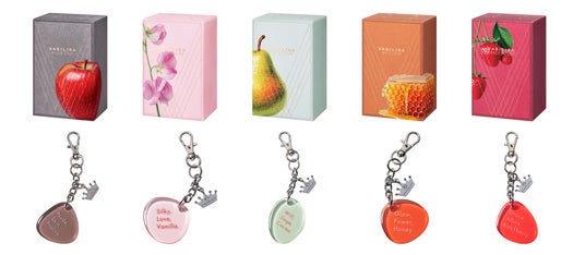 9月のキャンペーン期間中、ヴァシリーサ ヌード ワン シリーズのオードパルファム5種(各40mL、各4,400円(税込))に、チャーム付き限定パッケージが登場します。各香りのエディブルノートが大胆にプリントされたパッケージに、それぞれの香りのコンセプトが記されたオリジナルチャームを付属しています。