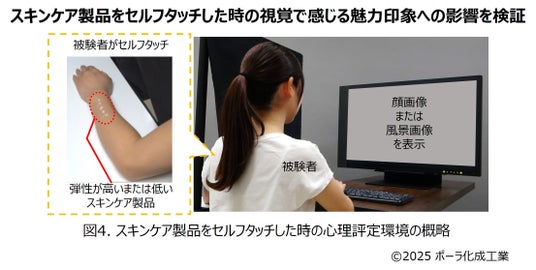 スキンケア製品を自身の肌に塗った際の視覚の魅力印象への影響を検証しました。