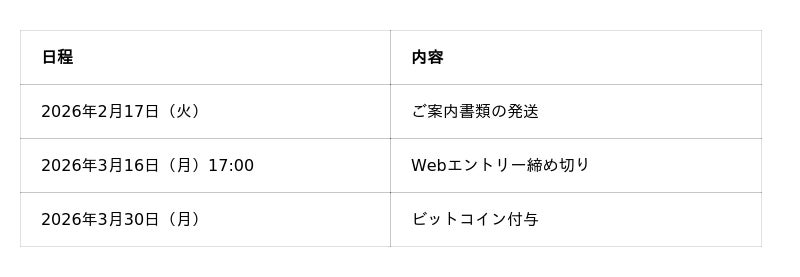 対象の株主様に、保有株式数に応じた額相当のビットコイン(BTC)を進呈いたします。