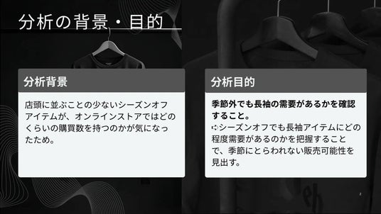 この授業内で学生が実際に企画・データ分析した成果から、特に優秀と評価したレポートをシリーズで公開します。2026年第1弾のテーマは「夏に長袖カットソー、買う? 買わない?」です。ZOZO・Instagramから収集したデータを情報ソースとして、様々な観点からデータに基づいた分析が行われています。