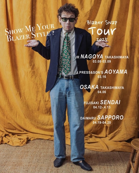 ”Blazer Snap Tour2025”は、「Blazer Snap」と称した、お客さまに手持ちのブレザーを用いて自由にスタイリングをしていただき、そのスタイルを各イベント店舗にて写真に収めInstagramの公式アカウントに投稿する活動で、アメリカン・トラディショナルを全員参加型で盛り上げていくイベントです。3月8日(土)~9日(日)、JR名古屋タカシマヤ『J.PRESS』ショップを皮切りに全国5か所で開催します。