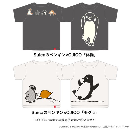 「楽しくないTシャツなんて、欲しくない。」をテーマに、遊びの詰まったデザインでアパレル・雑貨を展開する「OJICO〈オジコ〉」(有限会社チャンネルアッシュ、本社:石川県金沢市、代表取締役:越原裕幹)は、JR東日本のキャラクターで大人気の『Suicaのペンギン』×OJICOのコラボレーションTシャツを、4月24日(木)からJR東京駅・動輪の広場にて、4月28日(月)からJR目黒駅で開催のOJICO期間限定ショップ、およびECサイト「「GRANSTA MALL」にて先行販売いたします。