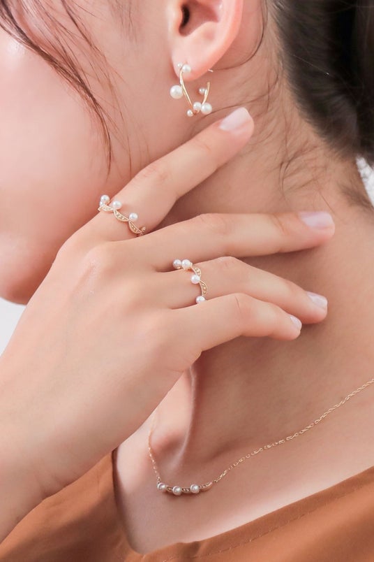 クラシカルな雰囲気のミル加工で縁取った花びらが、繊細に美しく煌めくゴールドリングやピアス、またティアラ風フレームに、艶やかなあこやベビーパールをリズミカルにセッティングしたジュエリーなど、身に纏う人の装いだけでなく、内なる美しさや日常にさりげなく輝きと華やぎを添えてくれるジュエリーとして、自分へのご褒美はもちろんギフトにもおすすめです。
