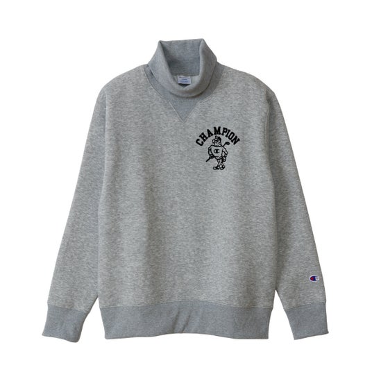 ストレッチ性と裏面を起毛することで保温性を向上しつつ、軽量化も実現した「Light Stretch Warm」を使用した、TECH WEAVE(R)(テックウィーブ) テリー タートルネックスウェットシャツです。Champion(R)(チャンピオン)の歴史を感じるオーセンティックな裏毛編みのスウェット素材で、コットンのようなソフトな肌触りと無骨ながら温かみと深みのある豊かな表情が特長です。着慣れた感覚で着用できる程良いリラックスフィット。襟元にガゼットを付けることで伸縮性が向上し、脱ぎ着の際のストレスを軽減しています。手首のリブは、アドレス時に邪魔にならない少し長めの仕様です。左胸にはカレッジ風の書体による「CHAMPION」と、ゴルフクラブを持ったイーグルのキャラクターを組み合わせたグラフィックをフロッキープリントで入れています。