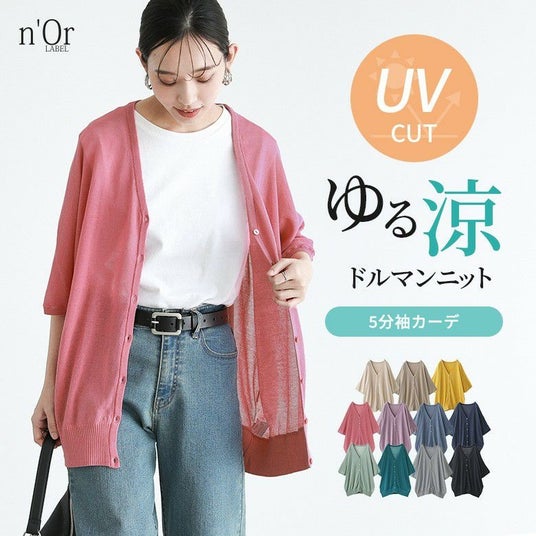 n'OrLABEL涼ニットUV五分袖ドルマンカーディガン商品番号:hfn0254