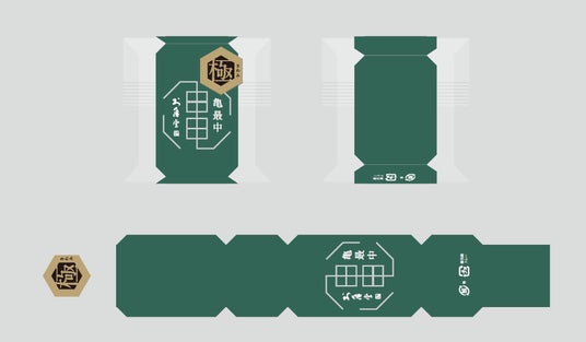 最上級素材を使用した亀最中に相応しい重厚感と格式をもたせるため、金色×深緑の落ち着いた配 色に。