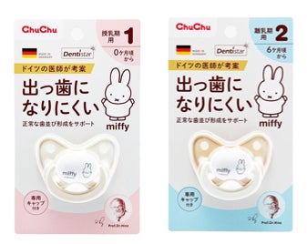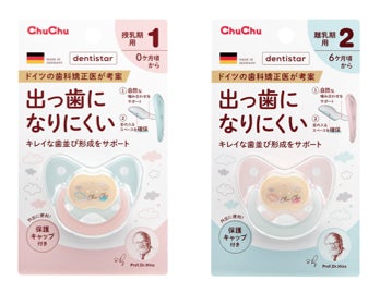 デンティスターシリーズはオーラルケア先進国であるドイツの歯科医師と共同開発した“出っ歯になりにくい”おしゃぶりです。