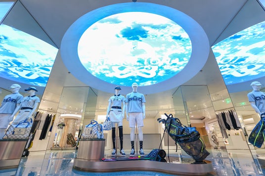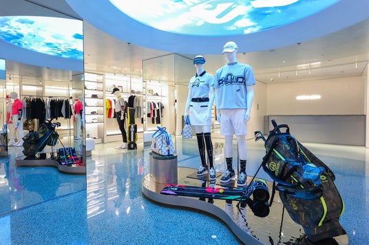 ゴルフコースの風景に着想を得た店内什器には、ウォーターハザードやバンカー、ティーグラウンドといった要素がさりげなく表現されるなど、細部にまでブランドの世界観が込められています。