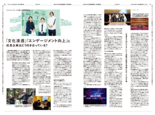 特集では、アイスタイルの中途入社研修、ビームスの社内イベント、ジンズホールディングスの働く空間、オルビスの報酬制度、サティス製薬の新入社員研修、エアークローゼットの全社合宿の6つの事例から、その設計や工夫を紹介します。