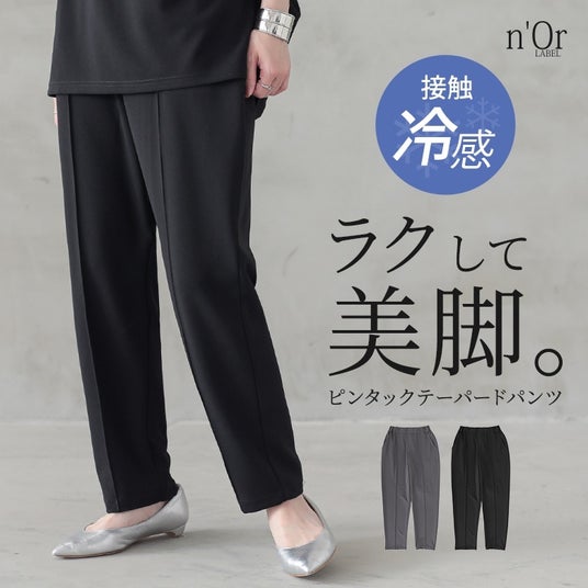 n'OrLABEL接触冷感ピンタックテーパードパンツ品番:12bo01e