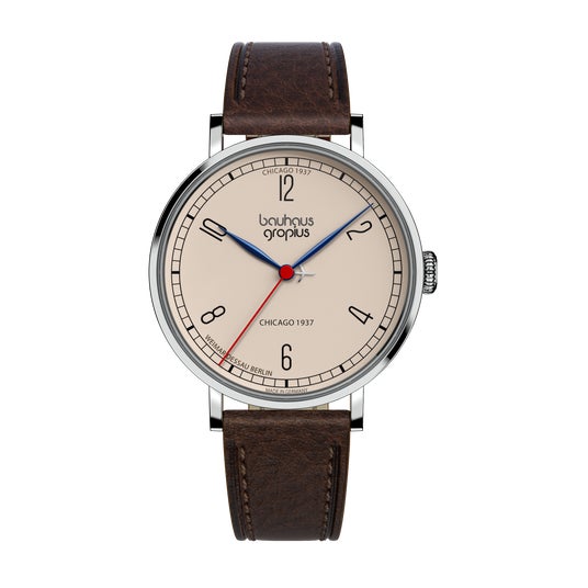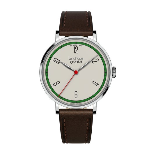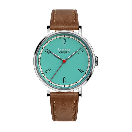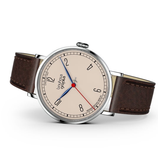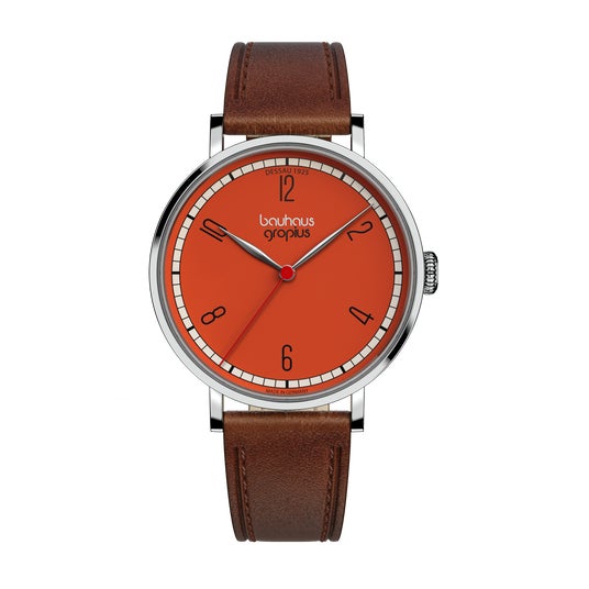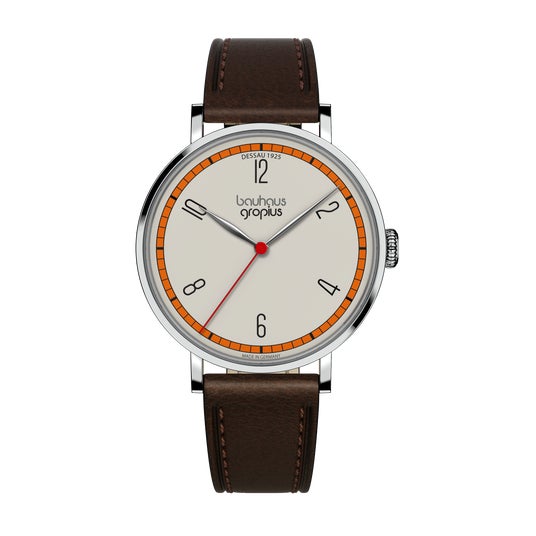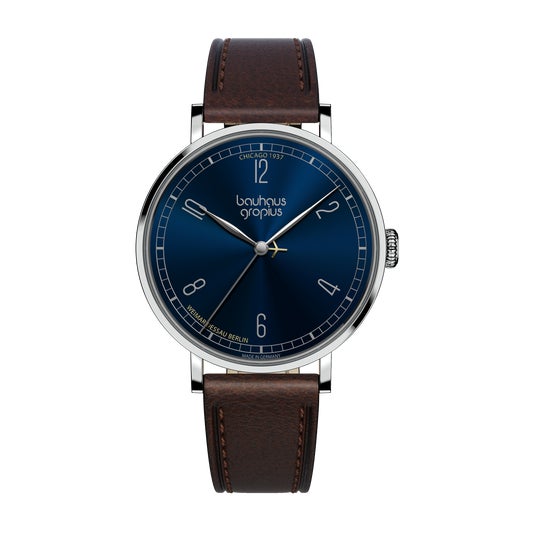 バウハウス・ヴァルター・グロピウスは、バウハウスのデザイン哲学、機能主義、精度の高い技術を融合したブランドです。バウハウスの設立者であり、初代校長でもあるヴァルター・グロピウスのデザイン哲学を継承したプロダクトは、バウハウスが掲げる理念の本質、明快さ、そして時代を超えた普遍的なデザインを具現化し、バウハウス愛好家だけではなく、現代の時計愛好家にも訴えかけます。