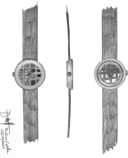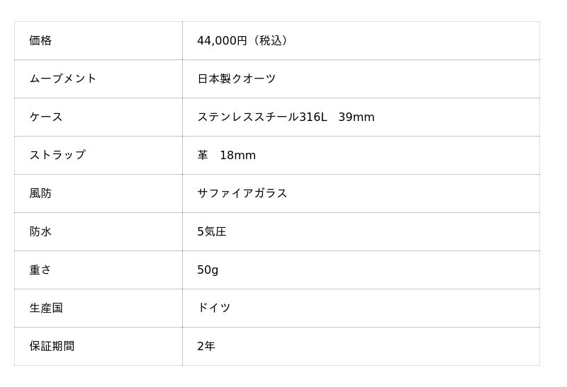 時計は、ヴュルツブルクにある自社工房で彼のデザインに基づき、職人たちの手によって作られています。バウハウスが生まれた地で、品質に拘り仕上げられたメイドインジャーマニーの時計です。