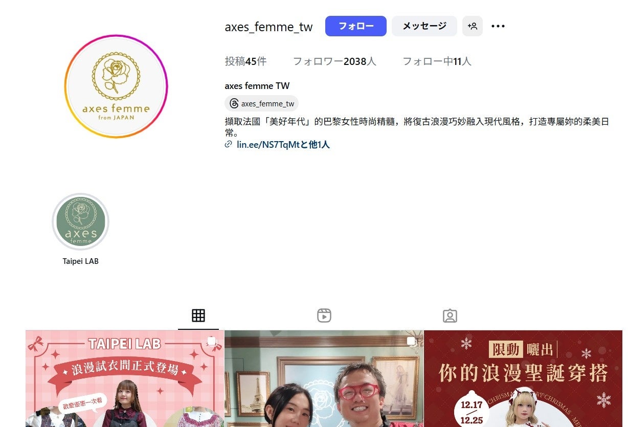 2025年12月18日には、台北・中山駅に「axes femme TAIPEI LAB」をオープンしました。