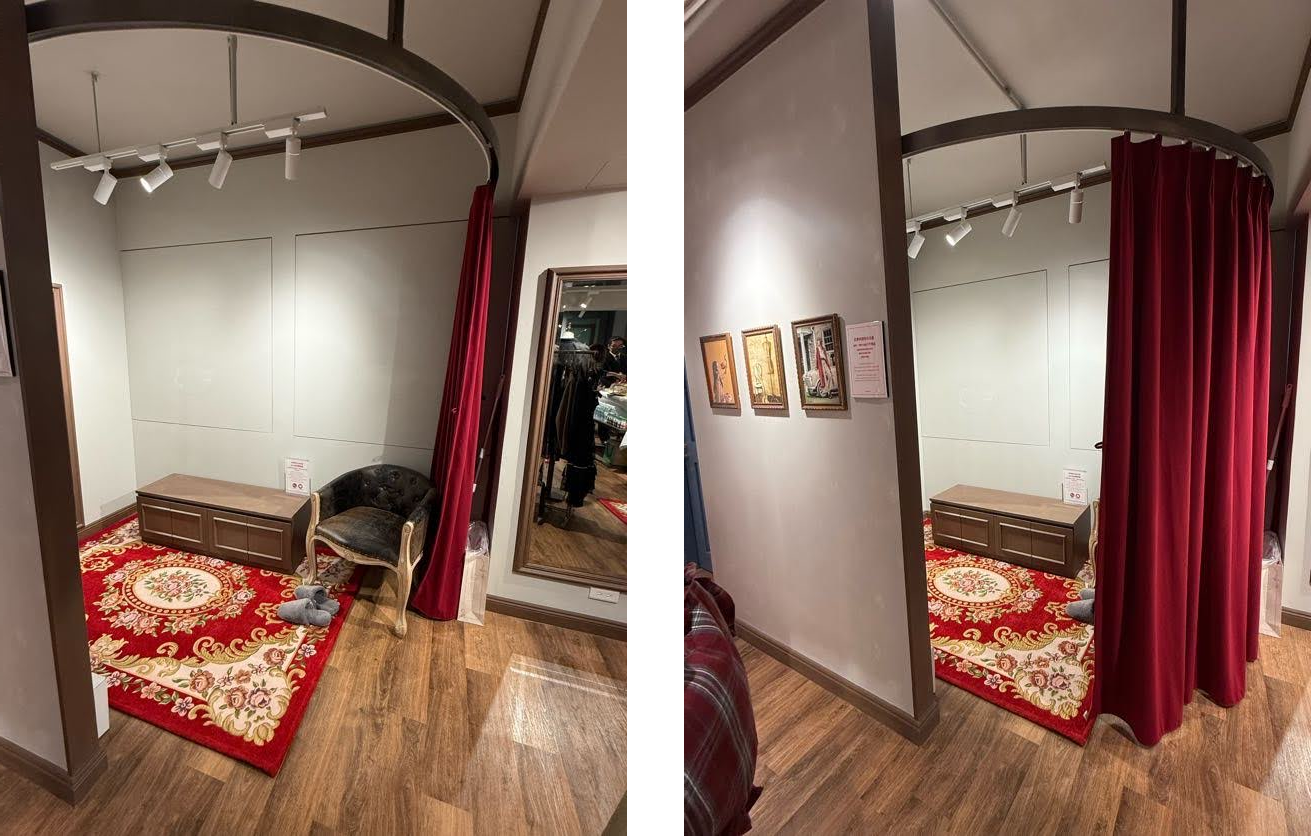 中でもひときわ目を惹くのが、大きな赤いカーテンを配した特別なフィッティングルーム。