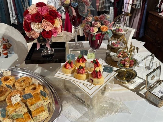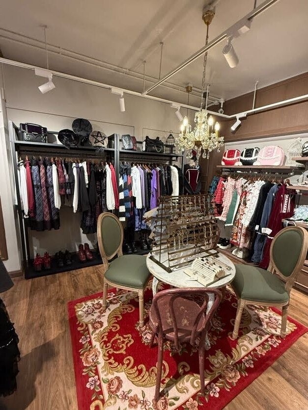 店内は、日本国内のaxes femme店舗と同様に、こだわりの装飾や壁紙、アンティーク調の什器や家具、シャンデリアなどを取り入れ、ブランドの世界観を随所に感じられる空間となっています。