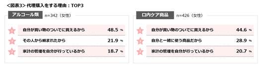 - 「買い物のついで」が最大の理由:女性の日常の買い物中に代理購入が行われている傾向