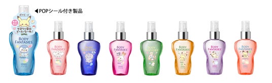 「ボディファンタジー」で人気の8種の香りのボトルに、ポッチャマ、ワッカネズミ、ニャスパー、ヒバニー、モクロー、ピカチュウ、ミミッキュ、ピチュー、マホミルがデザインされています。のんびりと“ピース”な暮らしを楽しむポケモンたちがデザインされたボディスプレーは、香りはもちろん、その愛らしい見た目も魅力です。