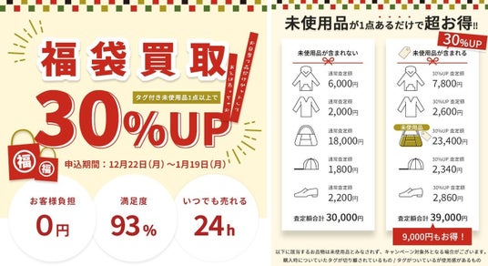 宅配買取「フクウロ」、タグ付き未使用品1点以上で全品30%UPとなる“福袋買取キャンペーン”を開催