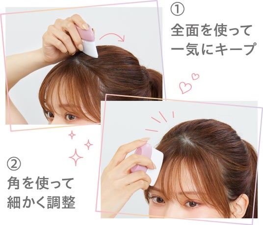 横にして広範囲のアホ毛やまとめ髪を一気に整えたり、縦にして細かい前髪の調整をしたり、全方位隙なし髪を簡単に作れちゃいます(ハート)