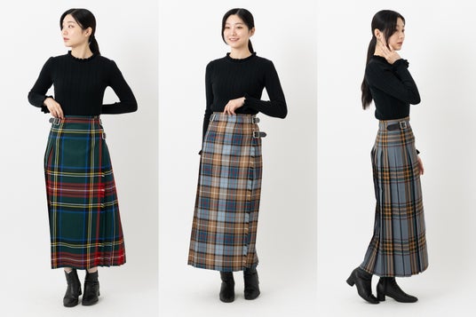 アイルランド産の上質なウーステッドウールが使われたキルトスカートを多数展開。