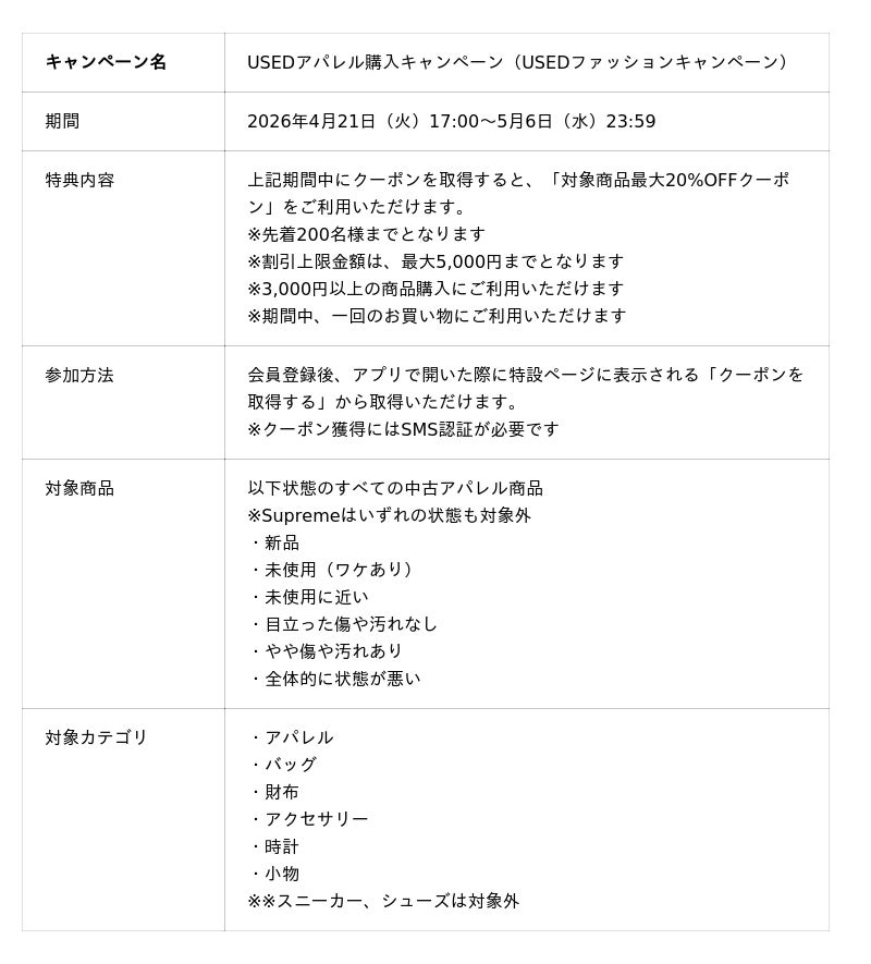 さらに、2026年4月には、インポート・ラグジュアリーブランドの新品商品の取り扱い拡充(※3)や、アパレルカテゴリーの購入手数料無料キャンペーン(※4)を開始し、中古・新品を問わず、より自由にファッションを楽しみ、新たな「好き」と出会える環境づくりを進めています。