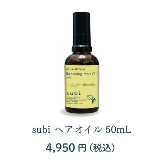 【style table/Ethical&SEA 限定、 subiコラボ商品 】オリジナルヘアオイル「subiオイル」50ml 4,950円(税込)※販売数に限りがありますのでご了承ください。