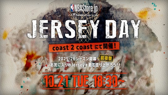 世界最大級のデジタルスポーツプラットフォームを運営するFanatics Inc.の日本法人、ファナティクス・ジャパン合同会社(東京都港区、マネジングディレクター:川名正憲、以下「ファナティクス・ジャパン」)はNBAファンにお届けするイベントとして『NBA Store Japan Presents. NBA Jersey Day』(以下、ジャージーデー)を2025年10月21日(火)、東京都渋谷区神宮前のバスケットボール好きが集うカフェ「Coast 2 coast」にて開催いたします。ファナティクス・ジャパンは、NBAグッズの公式ライセンシーとしてNBA公式オンラインストア「NBA Store Japan」(https://www.nbastore.jp/ja/)を運営しております。