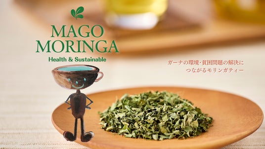 「MAGO MORINGA TEA」は世界で活躍する美術家・ 長坂真護氏がガーナで手がける事業で栽培した農薬不使用のモリンガを使用。現地の自然と人々の暮らしを尊重したサスティナブルなモリンガティーは、緑茶のように飲みやすい味わいと、ノンカフェインの安心感で、日々のウェルネス習慣に寄り添います。